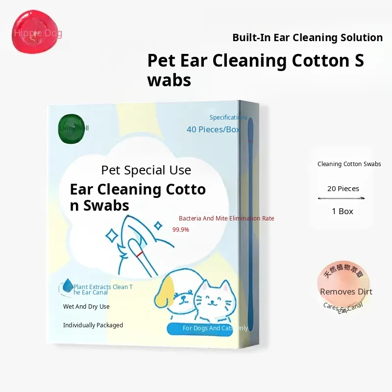 【Tmall U-First】Hippie Dog Pet Ear Cleaning Cotton Swabs with Built-in Ear Cleaner Solution - Gentle & Effective Care for Your Furry Friend's Ears!